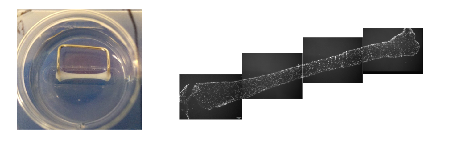 • Fibre musculaire en 3D grâce à un système "maison" de support fait en silicone et attaches métalliques