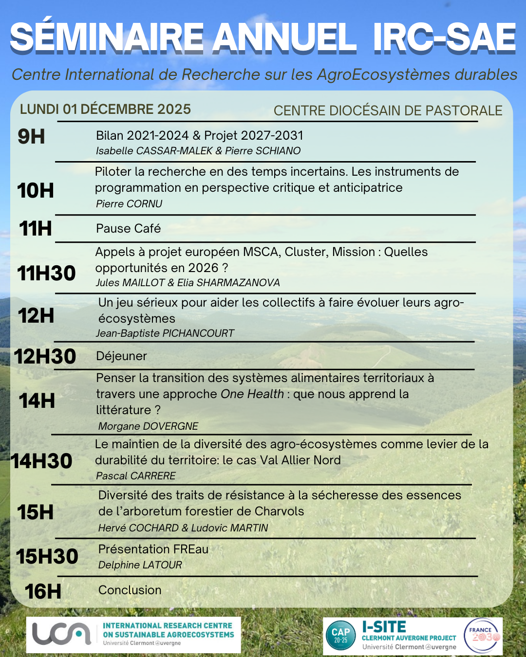 Le 1er décembre 2025 s'est tenu le Séminaire annuel du Centre international de recherche sur les AgroEcosystèmes durables.