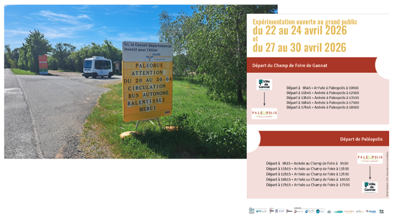 L'Université Clermont Auvergne au travers son CIR ITPS et ses partenaires donnent rendez-vous au grand public pour une expérience inédite : essayer le PaléoBus, une navette autonome électrique circulant sur route ouverte entre Gannat (Champ de foire) et Paléopolis !